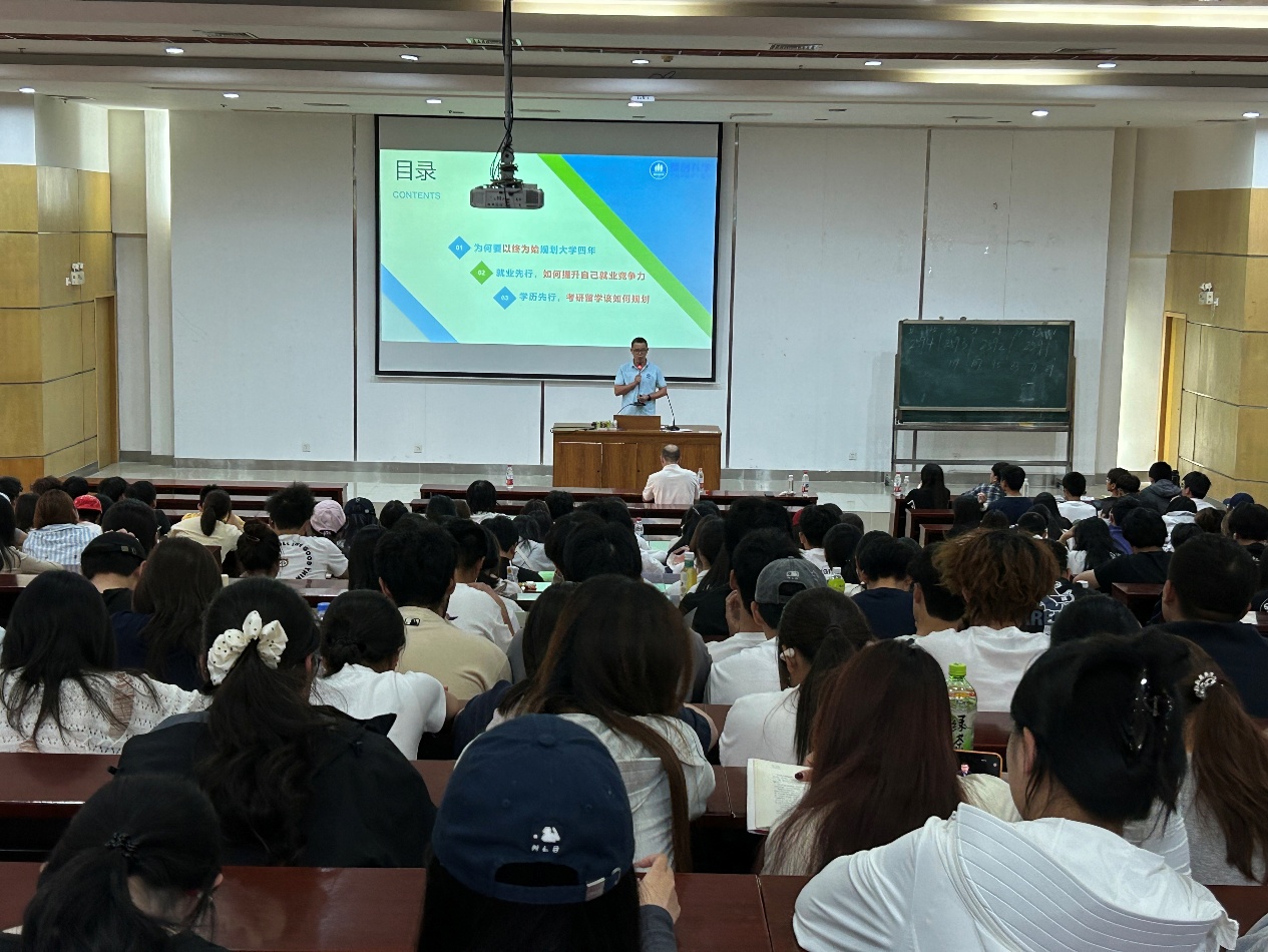 近日,为帮助2025级新生精准把握大学发展方向,提前布局职业生涯,集美大学诚毅学院经济系特邀聚创教育集团多元升学规划考试院副院长、中共党员苏海林老师,开展“以终为始,未你而来——大学生职业生涯规划讲座”。拥有6年高考志愿填报经验与10年考研一线实操经验的苏老师,针对普通本科和专升本两类新生的不同学情,从“为何以终为始规划”“如何提升就业竞争力”“考研留学规划”三大维度,带来一场兼具针对性与实用性的指导盛宴,现场反响热烈。